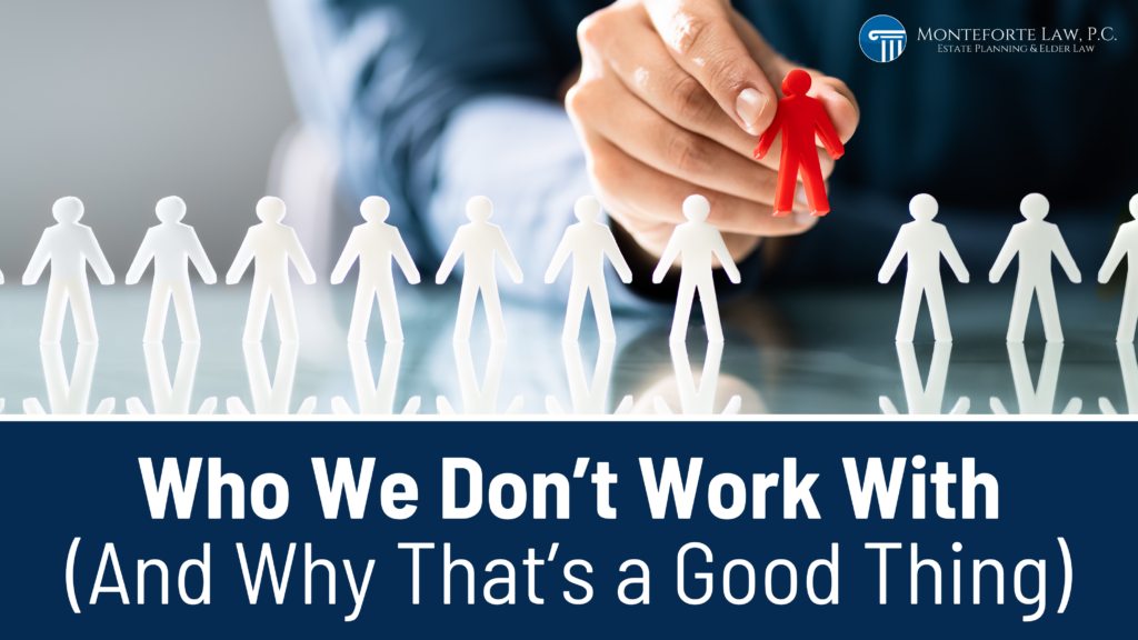 We want to be upfront, so we don’t waste your time or money. If you don’t have assets to protect, then Monteforte Law may not be the right fit for you right now.